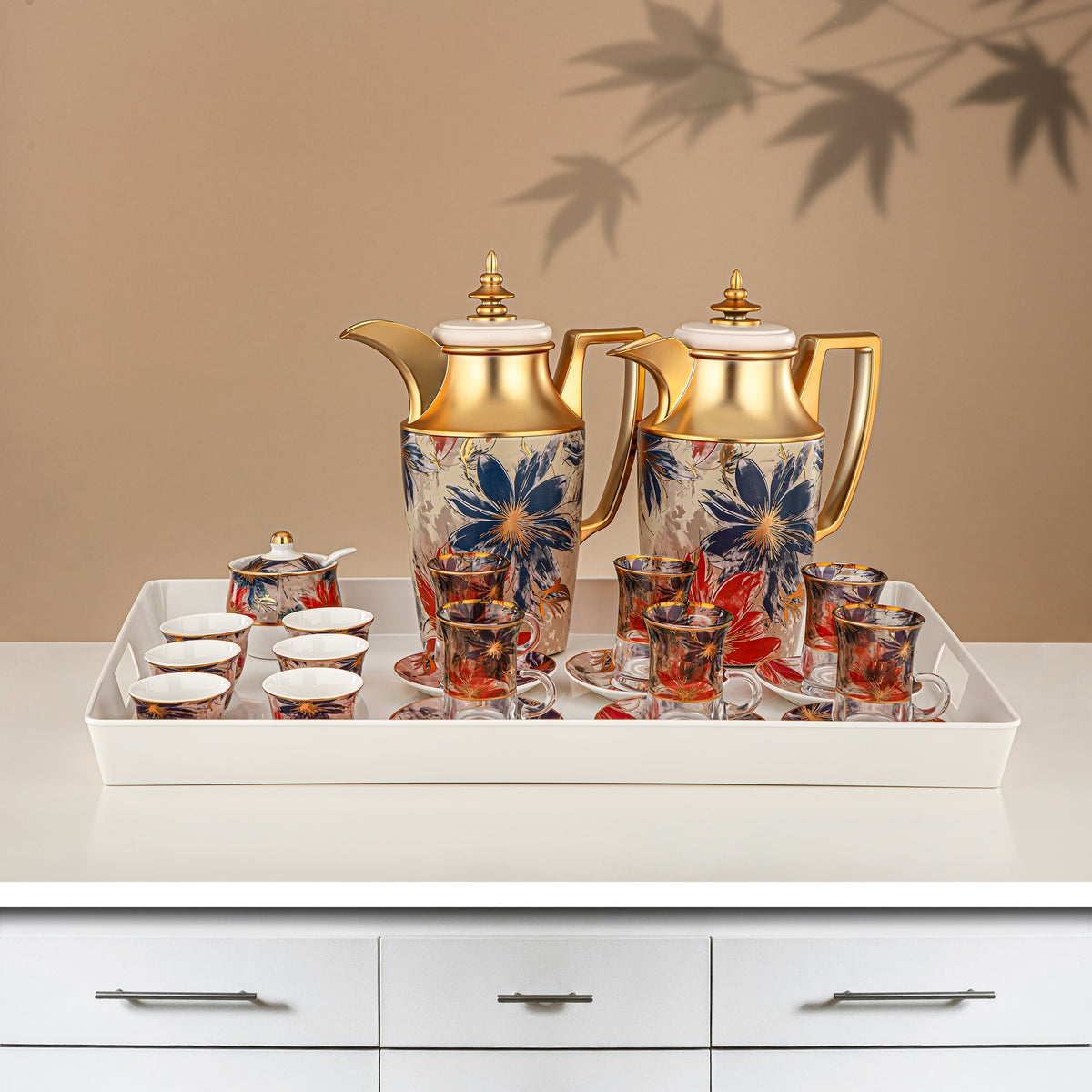 ٢٤ قطعة، ١ لتر + ١ لتر، زهري وذهبي مطفي (٢٤-JBH-TR-AZO5S) - مجموعة شاي وقهوة كاملة