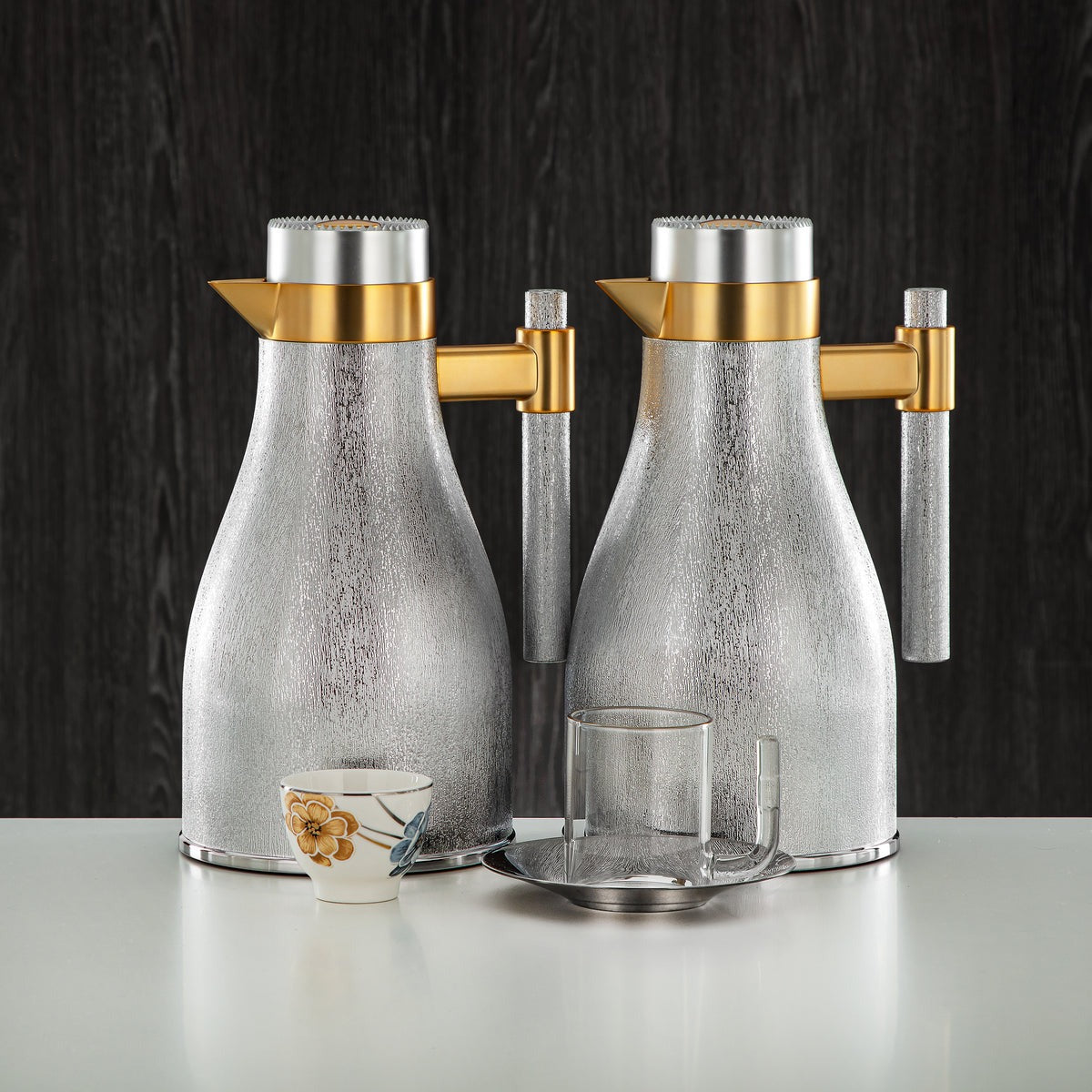 طقم قوارير مفرغة من الهواء مزودة بزر ضغط من ABS سعة 1 لتر + 1 لتر فضي وفضي غير لامع (GOK-S-MS- MS) - تقديم أنيق
